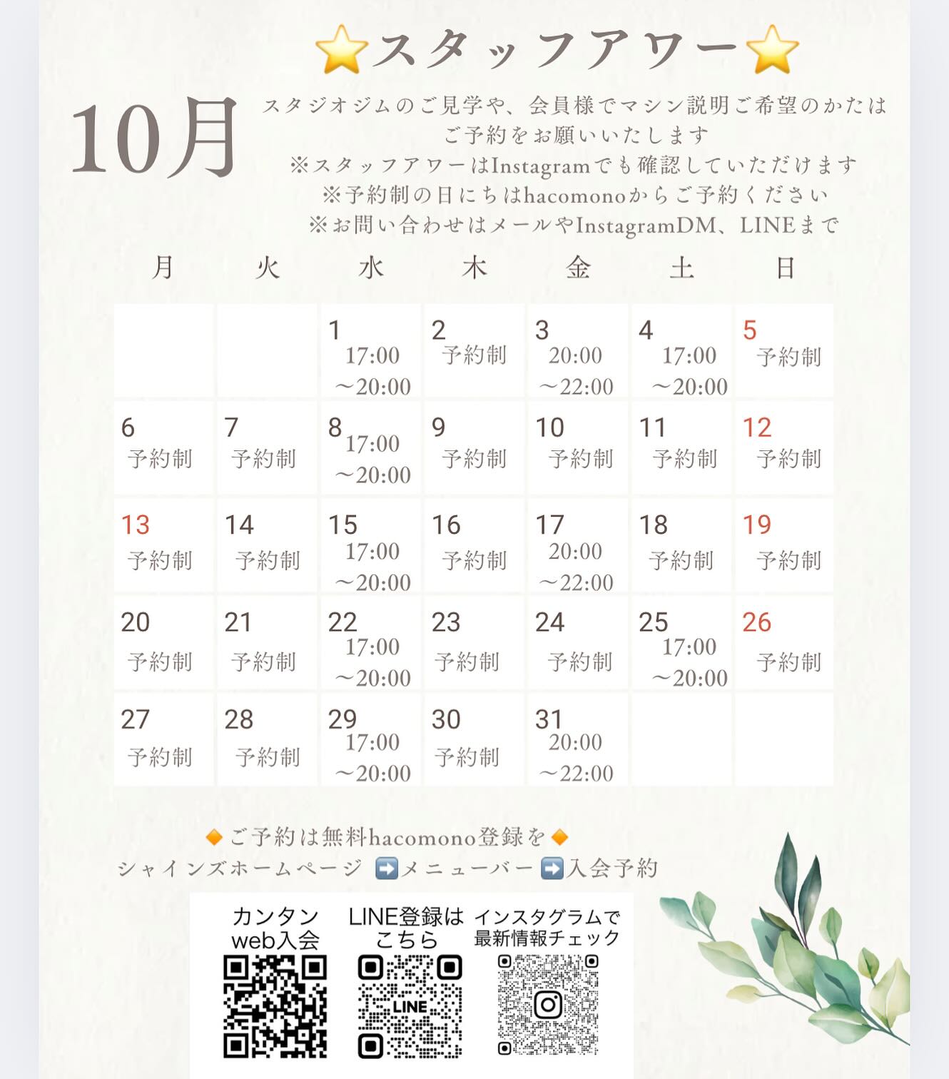 ご希望のかた、会員様でマシン説明ご希望のかたは