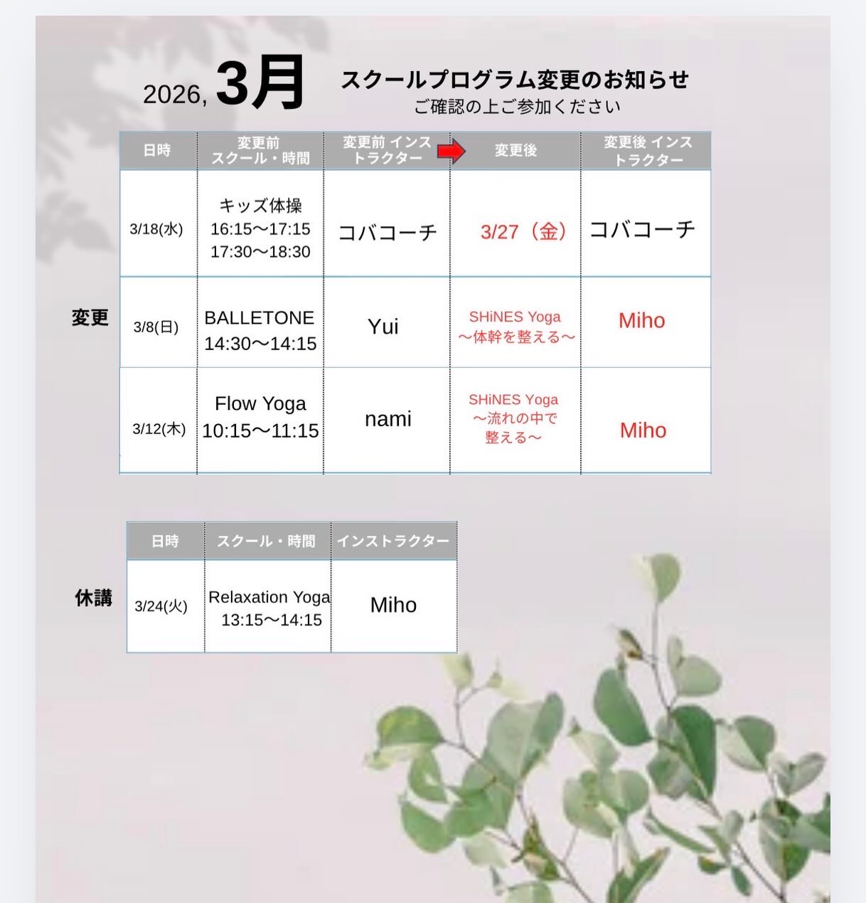 ✨2026年3月のお知らせ✨