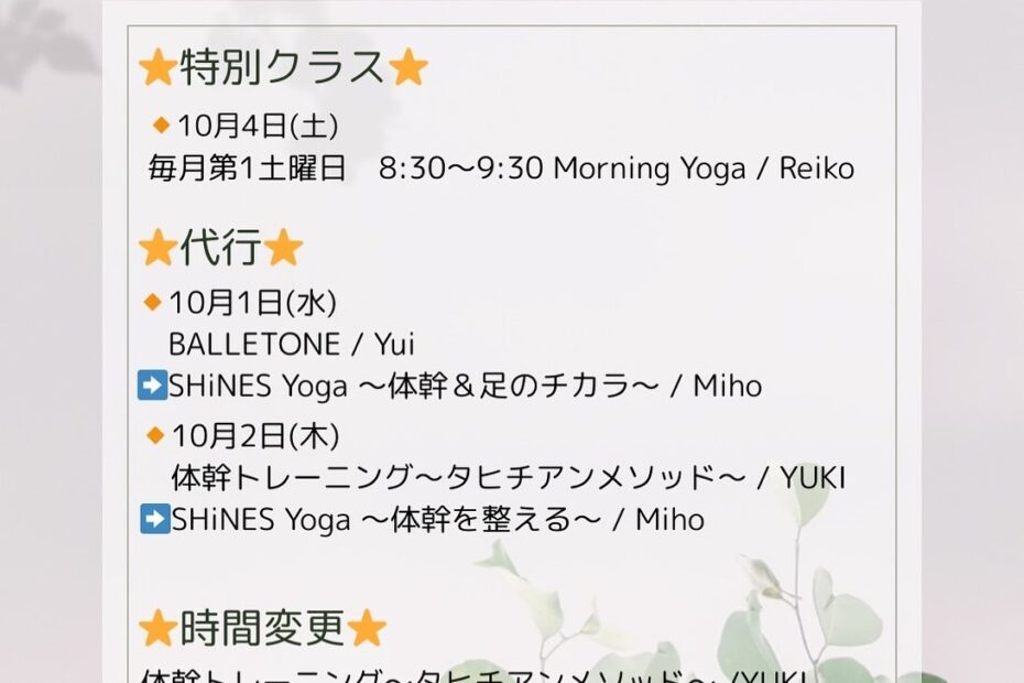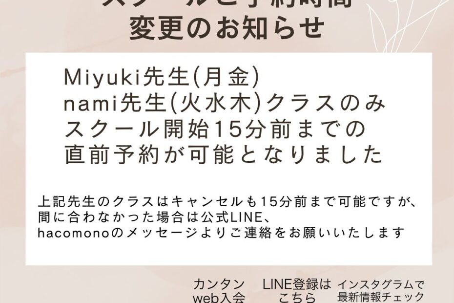 ⭐️スクールご予約時間の一部変更のお知らせ⭐️