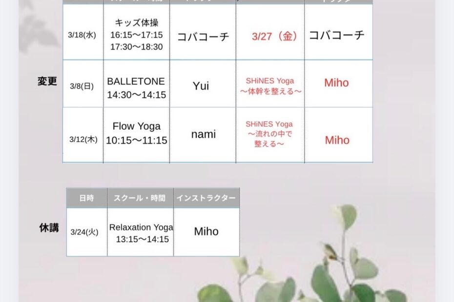 2026年3月スクールスケジュール🗓️更新いたしました🆙