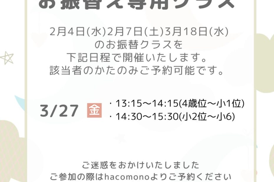 📢キッズ体操お振替専用クラスのお知らせ📢