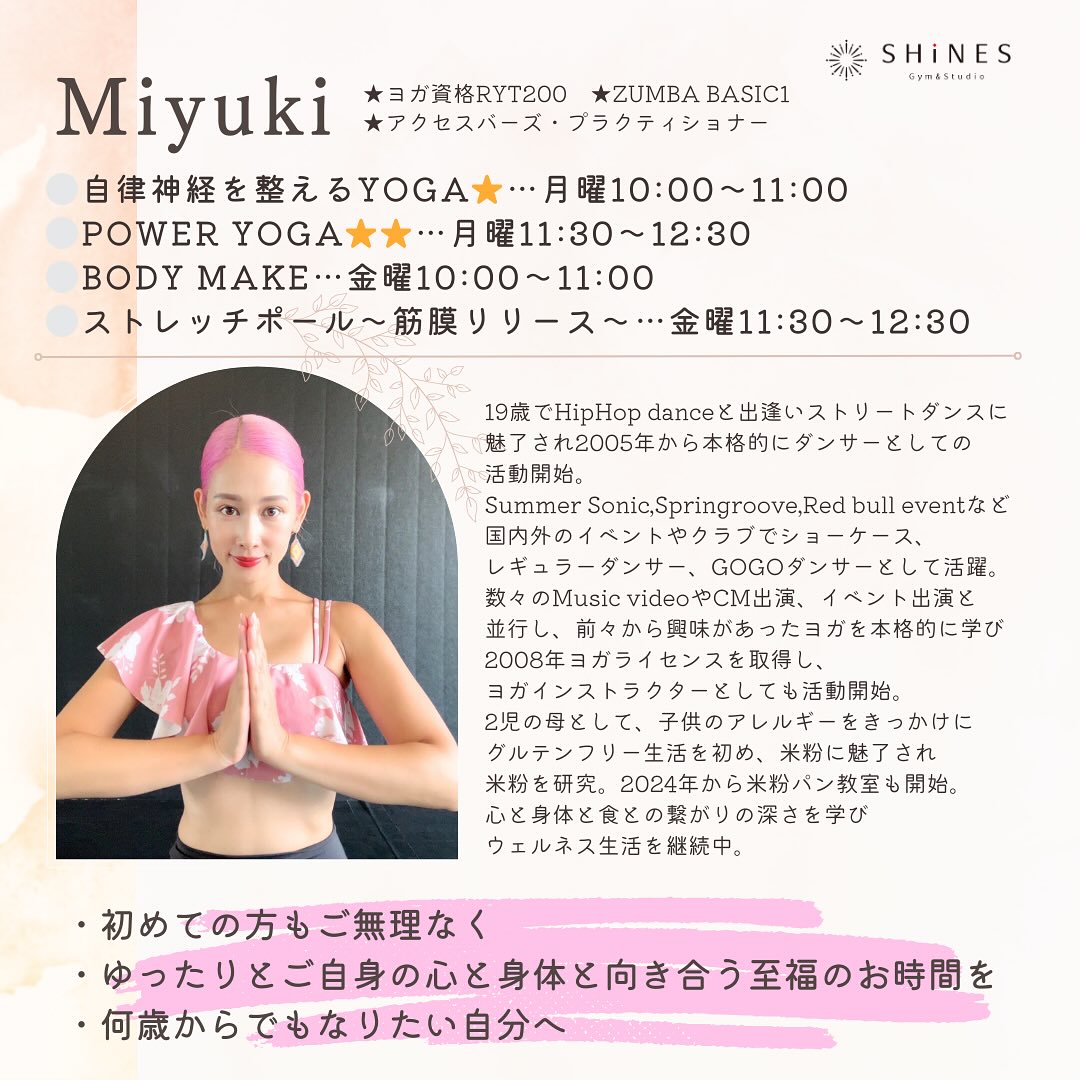 数々のMusic videoやCM出演、イベント出演と並行し、前々から興味があったヨガを本格的に学び
