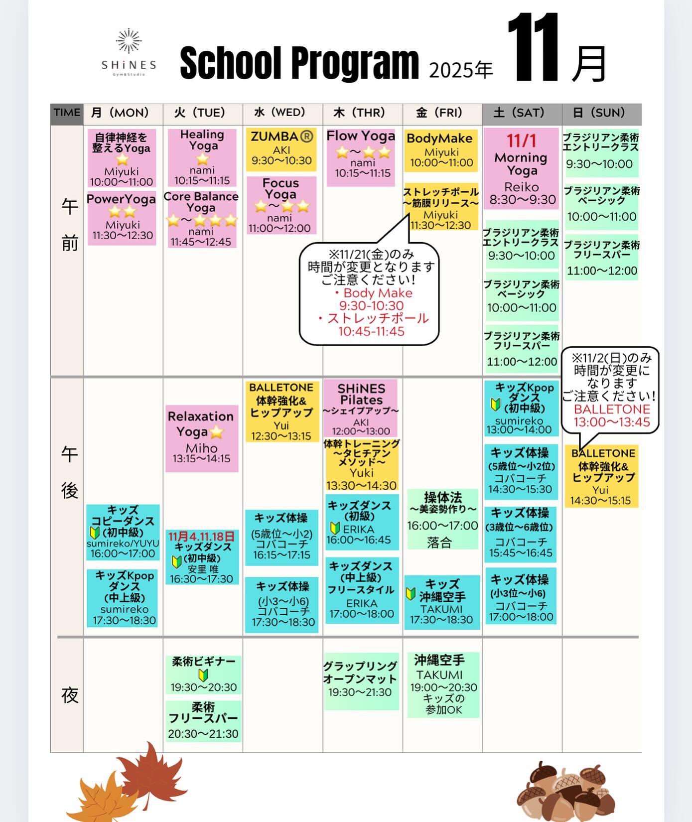 2025年11月スクールスケジュール🗓️更新いたしました🆙
